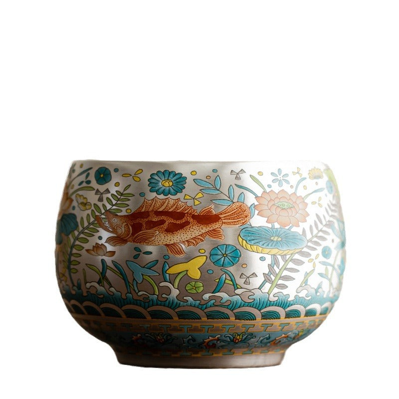 Klindao Artisan Tea Cup: Silver Glaze with Ancient Fish Pattern - A Large Capacity Master Cup for Solo Tea Moment