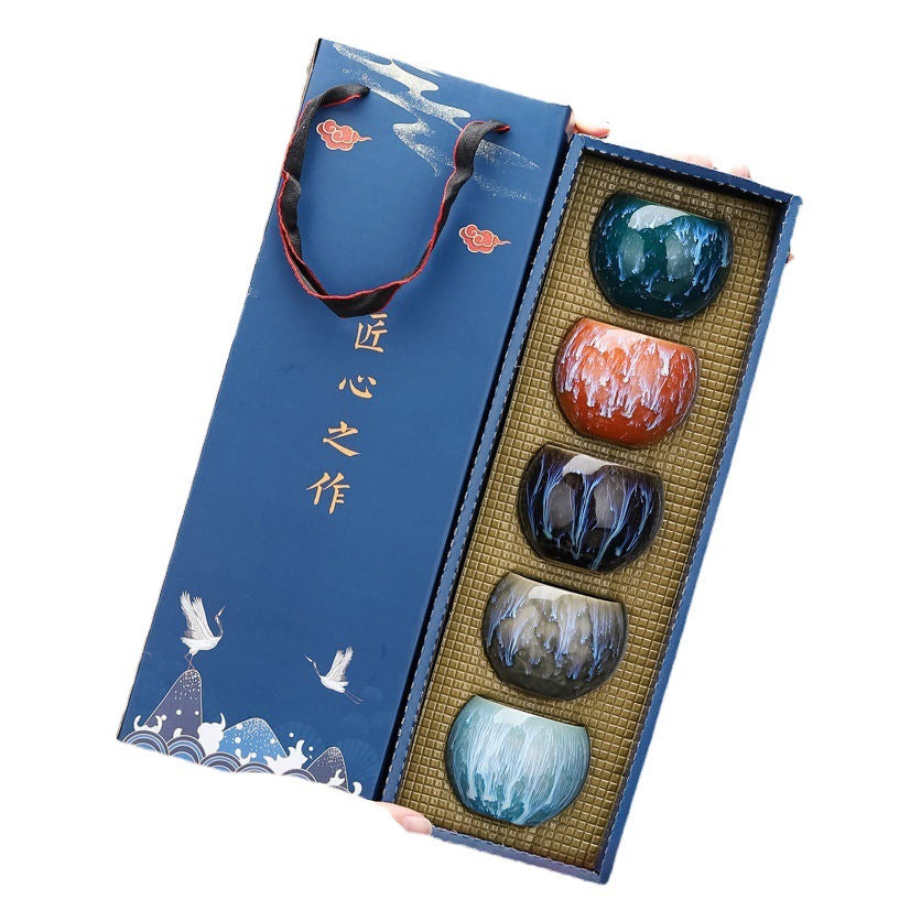 Yaojian teacup five-element cup Tianmu teacup single cup master cup tea cup gift box business gift wholesale